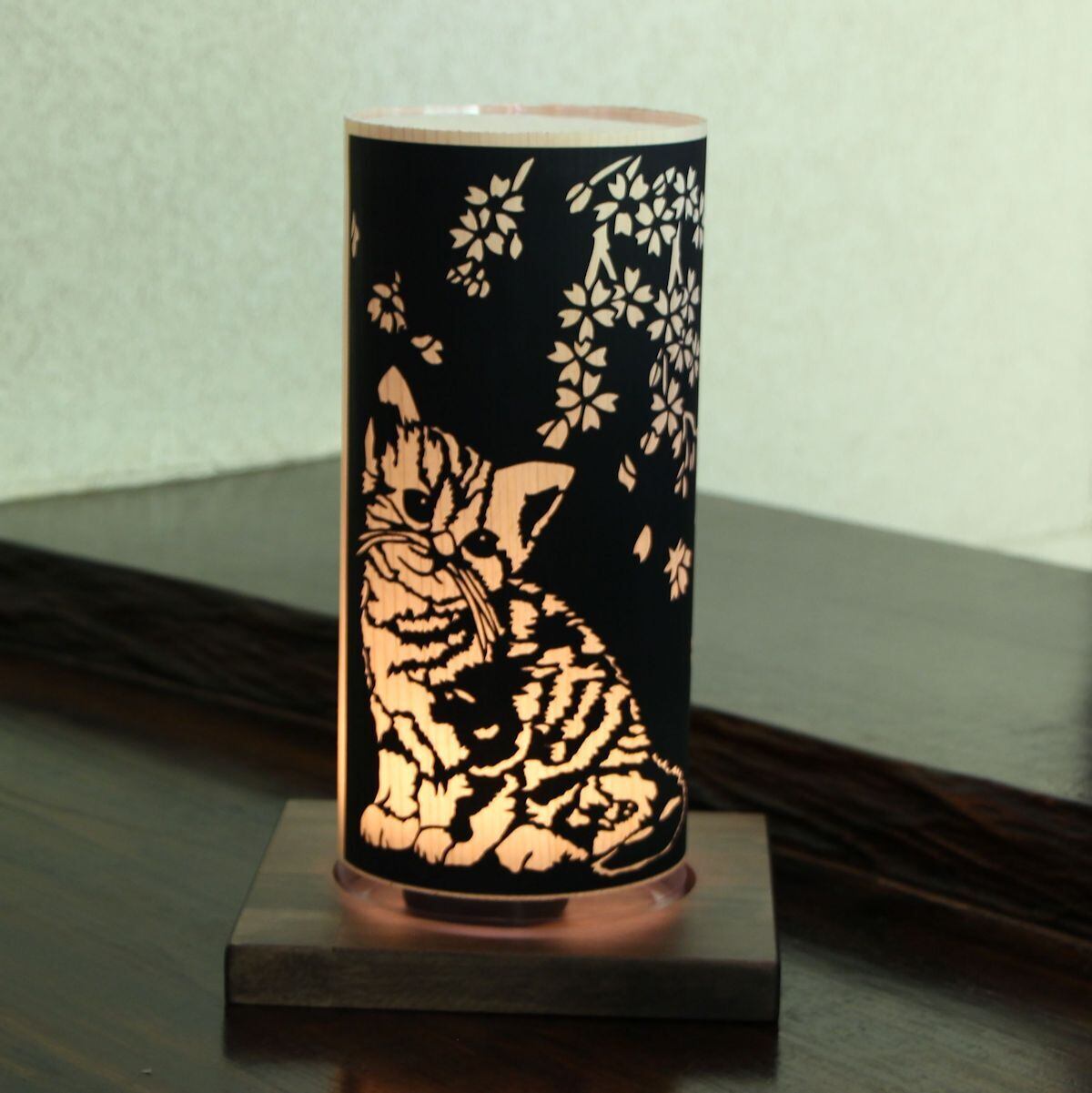 天然木 「あかり 灯籠」 オリジナル切り絵 仔猫 国産 「森の詩シリーズ」87-0031 日本製 新生活