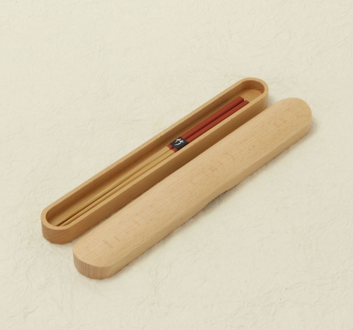 ブナの木の特徴である木肌のやさしい風合いとやわらかいフォルムが魅力的な箸箱です。
