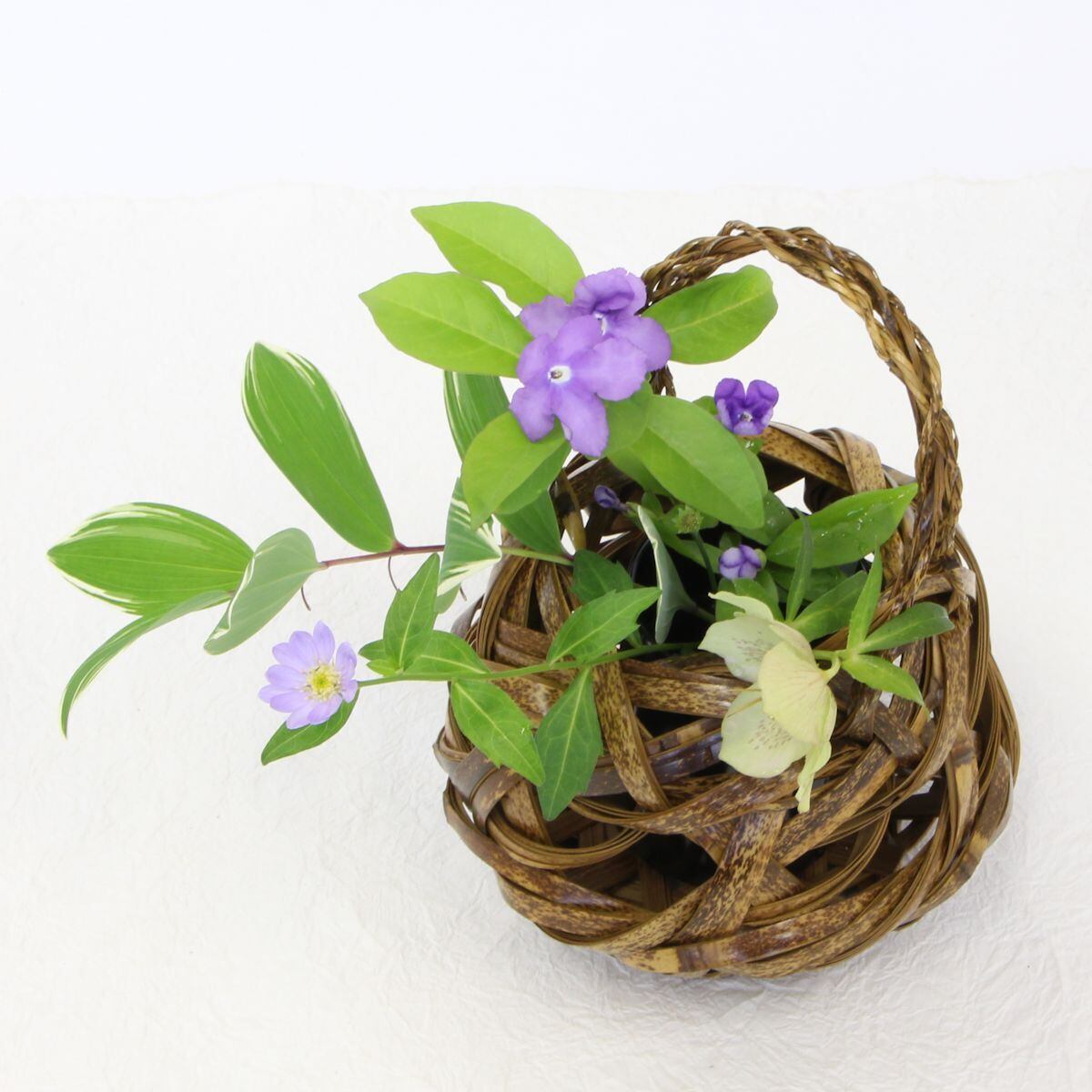 天然の高知産・虎斑竹(とらふだけ)を使用し、熟練職人の手により一つ一つ手作りで丁寧に編まれた花籠は