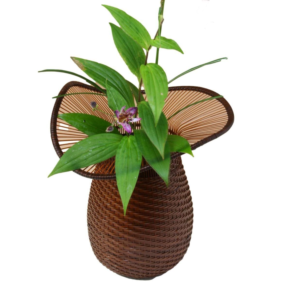 天然の大分産・真竹(まだけ)を使用し、日展作家の手により手作りで丁寧に編まれた花籠は