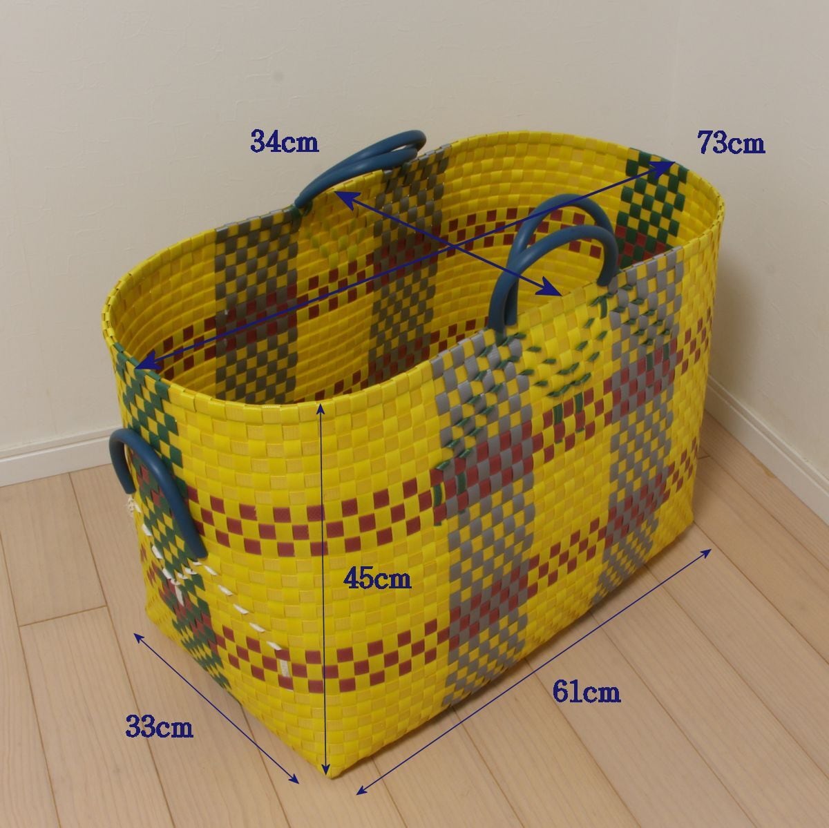 プラかご ベトナム製 大容量 重量物運搬 グリップ付 底の大きさ:61×33cm 頑丈 多用途 希少 家事 農作業 ガーデニング 収穫 買出し ランドリー 防水 ジャンボサイズ レジャー アウトドア ツールバッグ