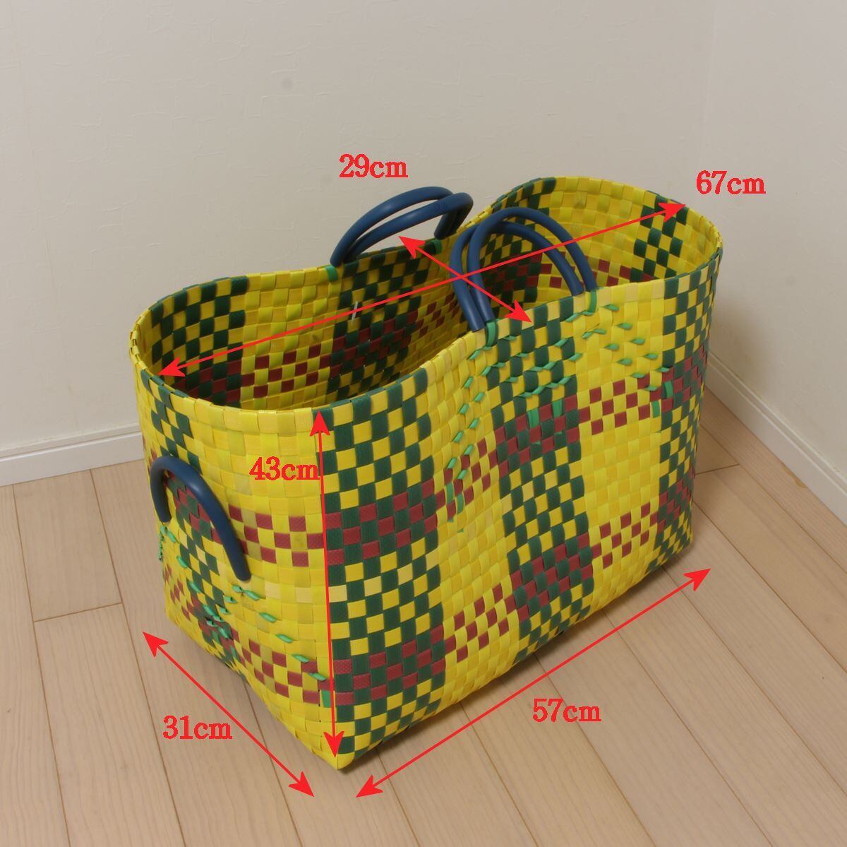 プラかご ベトナム製 大容量 重量物運搬 グリップ付 底の大きさ:57×31cm 頑丈 多用途 希少 家事 農作業 ガーデニング 収穫 買出し ランドリー 防水 ジャンボサイズ レジャー アウトドア ツールバッグ