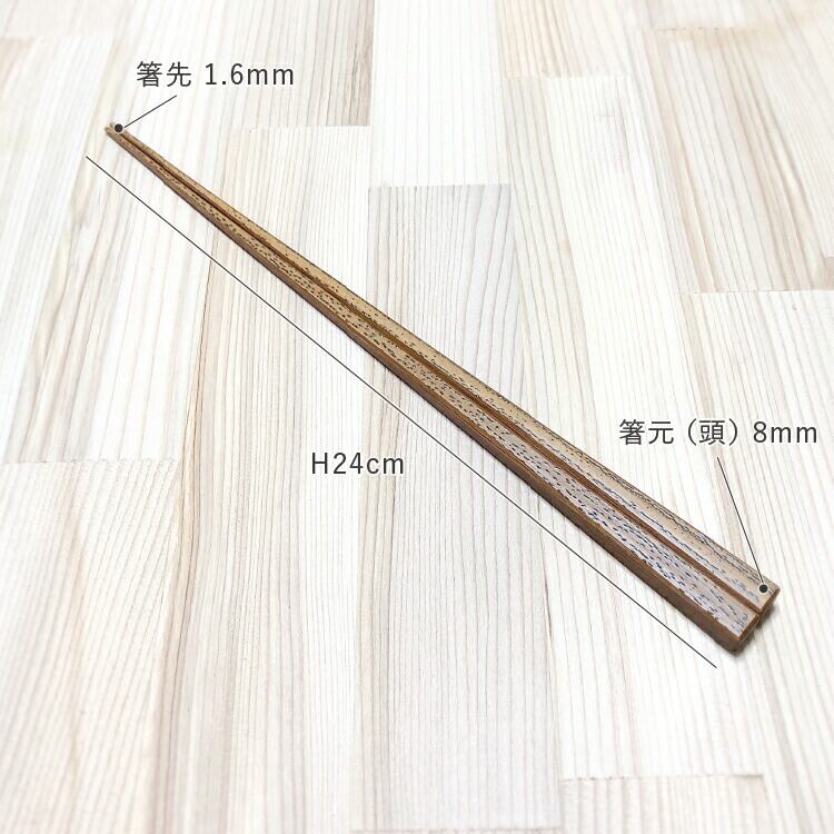 長さ: 24cm、箸元(頭): 8mm、箸先: 1.6mm