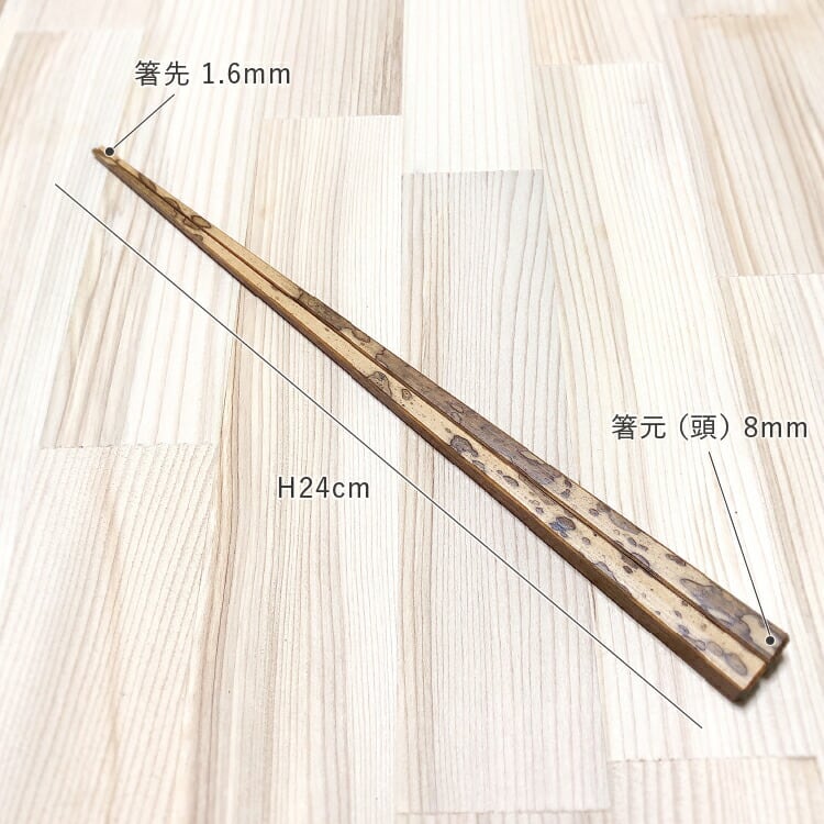 長さ: 24cm、箸元(頭): 8mm、箸先: 1.6mm