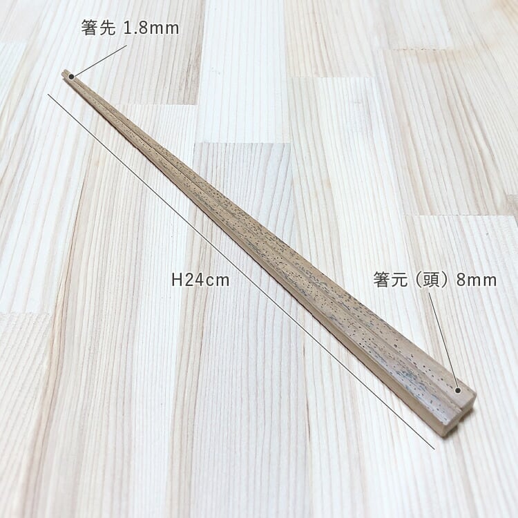 長さ: 24cm、箸元(頭): 8mm、箸先: 1.8mm