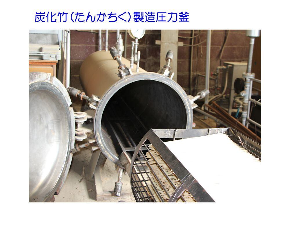 竹を高圧釜で蒸し焼きにすることにより